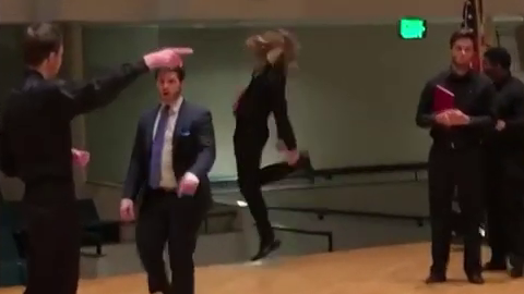 足をブンブンしてステージから落下する男性